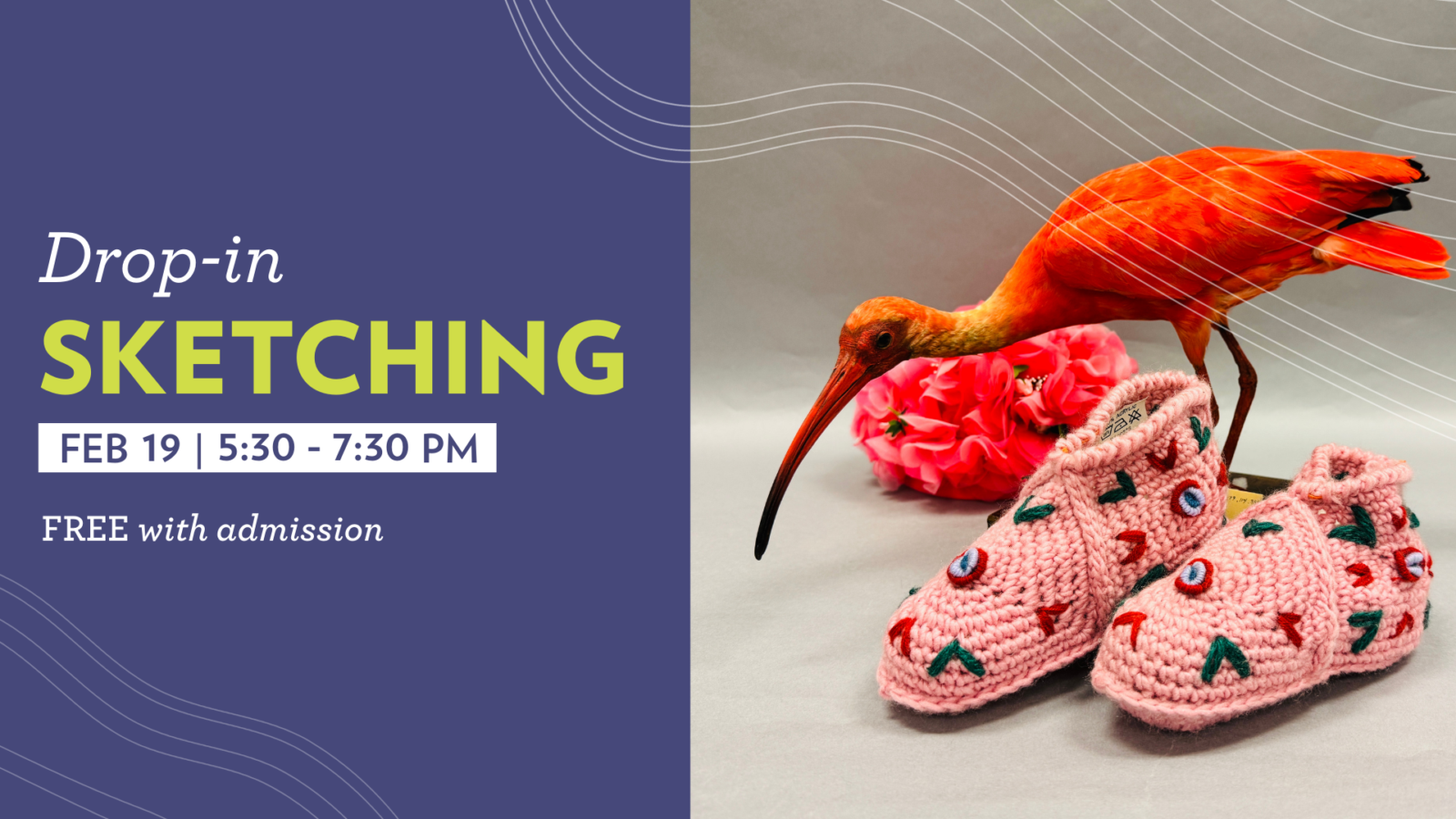 Have you ever wanted to use the Royal Alberta Museum’s vast collections as your own personal sketching studio? Now is your chance! This month’s session features a “Pink Paradise” theme, showcasing a vibrant array of rarely seen red and pink objects from the museum’s vaults.