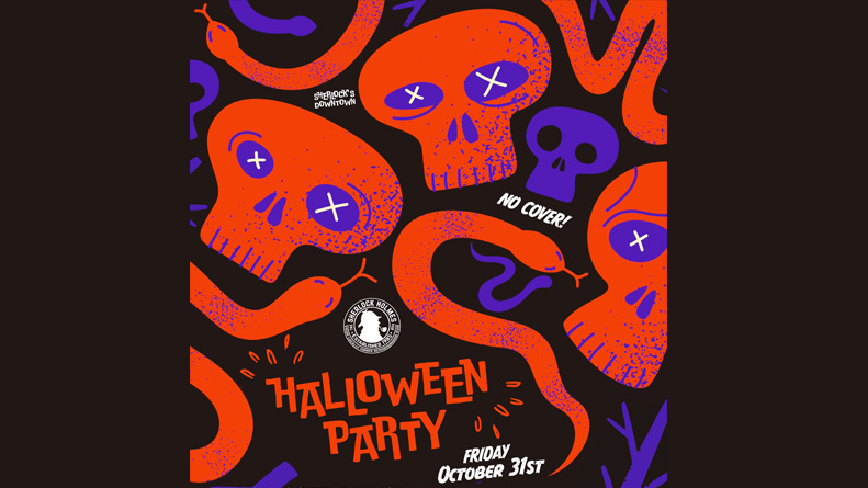 Celebrate Halloween at Sherlock Holmes Pub with a night full of live music from Rose Coloured Glasses starting at 9PM, costume contests with prizes, and wicked drink specials.