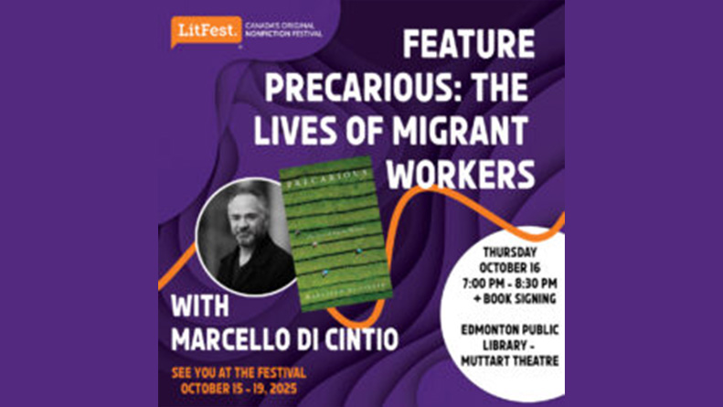 Join award-winning author Marcello Di Cintio in conversation with LitFest board treasurer Danielle Paradis as they discuss his book Precarious: The Lives of Migrant Workers.