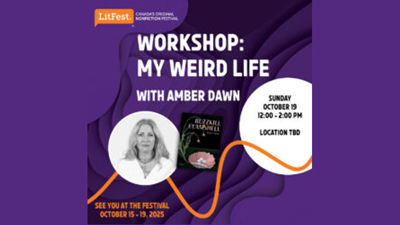 Invite experimentation and spontaneity into your writing practice with My Weird Life, a workshop designed for memoir, narrative poetry, and autofiction writers, adaptable to any personally-rooted writing form. Writers at all stages are welcome. The workshop includes generative freewriting prompts, short readings from Amber Dawn’s work, craft mini-lectures, and discussion.