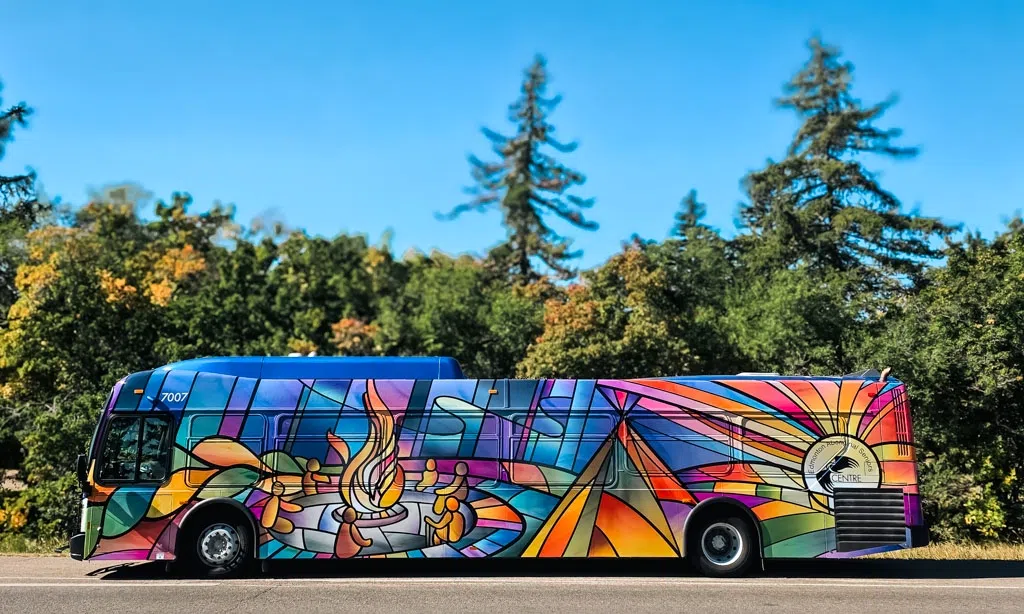 See the Indigenous art-wrapped ETS bus light up with a Sokaris Studio projection every 30 minutes from 5:30–8 PM.