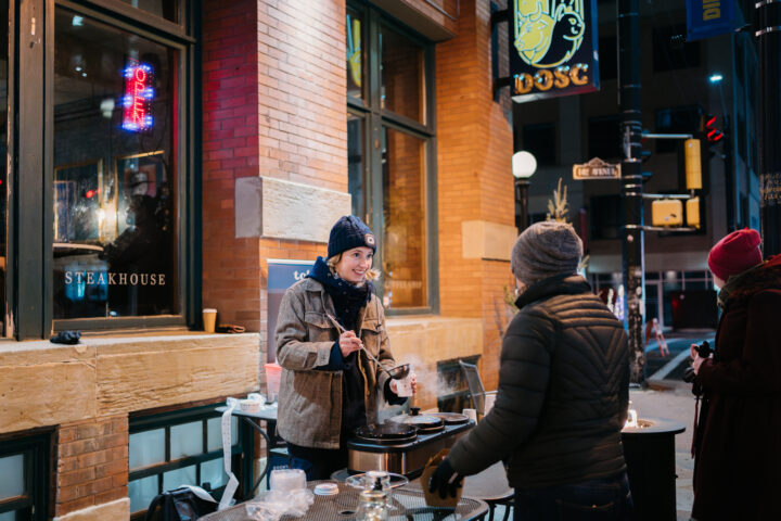 Sip, stroll, and enjoy! 104 Street becomes a lively winter patio — grab a drink and join the fun.